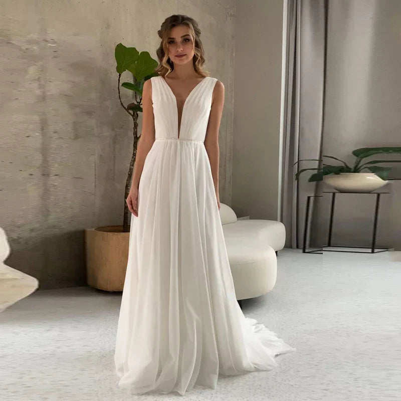A-line Long Sleeves Wedding Dresses Lace Tulle Backless Bridal Gowns Boho Vestidos De Novia Sexy V-neck Custom Made