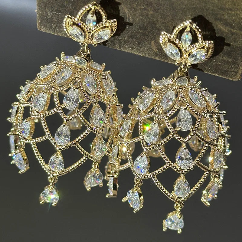 High Quality AAA Zircon Bridal Earrings Gold Color Cubic Zirconia Wedding Earring Brides Women Accessories Birthday Gift Jewelry