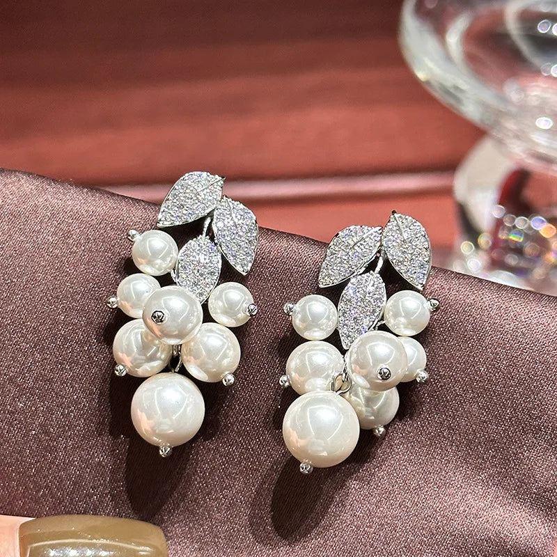 Leaf Pearl Zircon Bridal Earrings Silver Color Zirconia Wedding Earring For Brides Bridesmaids Accessories Women Gift Jewelry