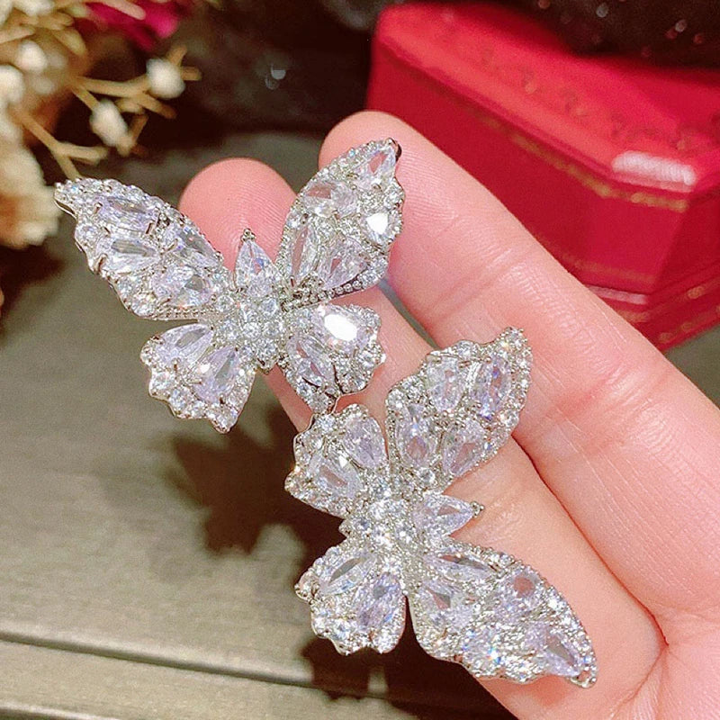 Luxury Butterfly Zircon Bridal Earrings Cubic Zirconia Wedding Earring For Brides Accessories Women Birthday Gifts Jewelry
