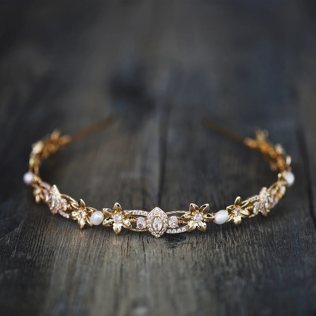Bridal Hair Jewelry Vintage Gold Color Headbands Tiaras Zirconia Headpieces Crowns Brides Zirconia Hairbands Wedding Accessories