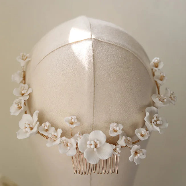 Bridal Jewelry Porcelain Flower Headband Gold Silver Color Hair Comb Pin For Brides Women Headwear Heapieces Wedding Accessories