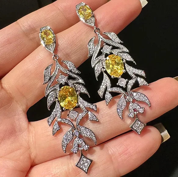 High Quality Yellow Zircon Bridal Earrings Cubic Zirconia Wedding Earring For Bride Women Accessories Dinner Party Jewelry