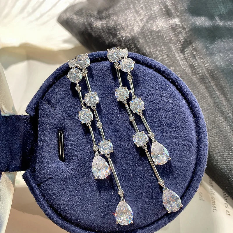Luxury AAA Zircon Bridal Earrings Long Cubic Zirconia Wedding Earring For Women Brides Accessories Birthday Gifts Jewelry