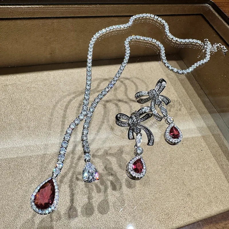Vintage AAA Zircon Bridal Earrings Red CZ Zirconia Wedding Earring For Brides Women Accessories Dinner Party Dress Jewelry