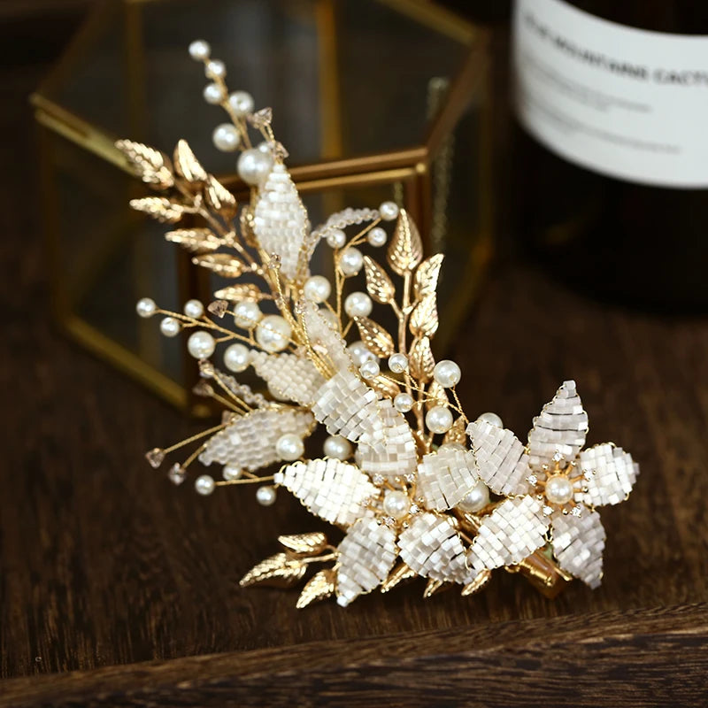 Vintage Gold Color Headpieces Headwear Crystal Pearls Headbands Hairbands Bride Hair Pin Clip Bridal Jewelry Wedding Accessories