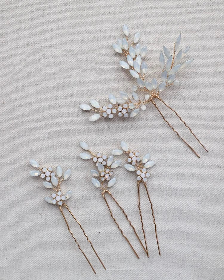Opal Crystal Hairpins Flower Leaf Headpieces Headdress Brides Women Hair Combs Pins Clips Wedding Jewelry Bridal Accessories