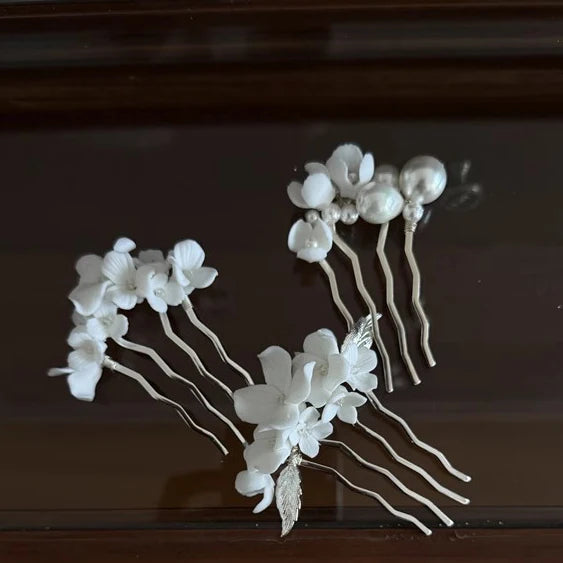 Bridal Jewelry Porcelain Flower Hair Comb Pin Pearl Hairpin For Brides Bridesmaids Silver Color Head Pieces Wedding Accessories