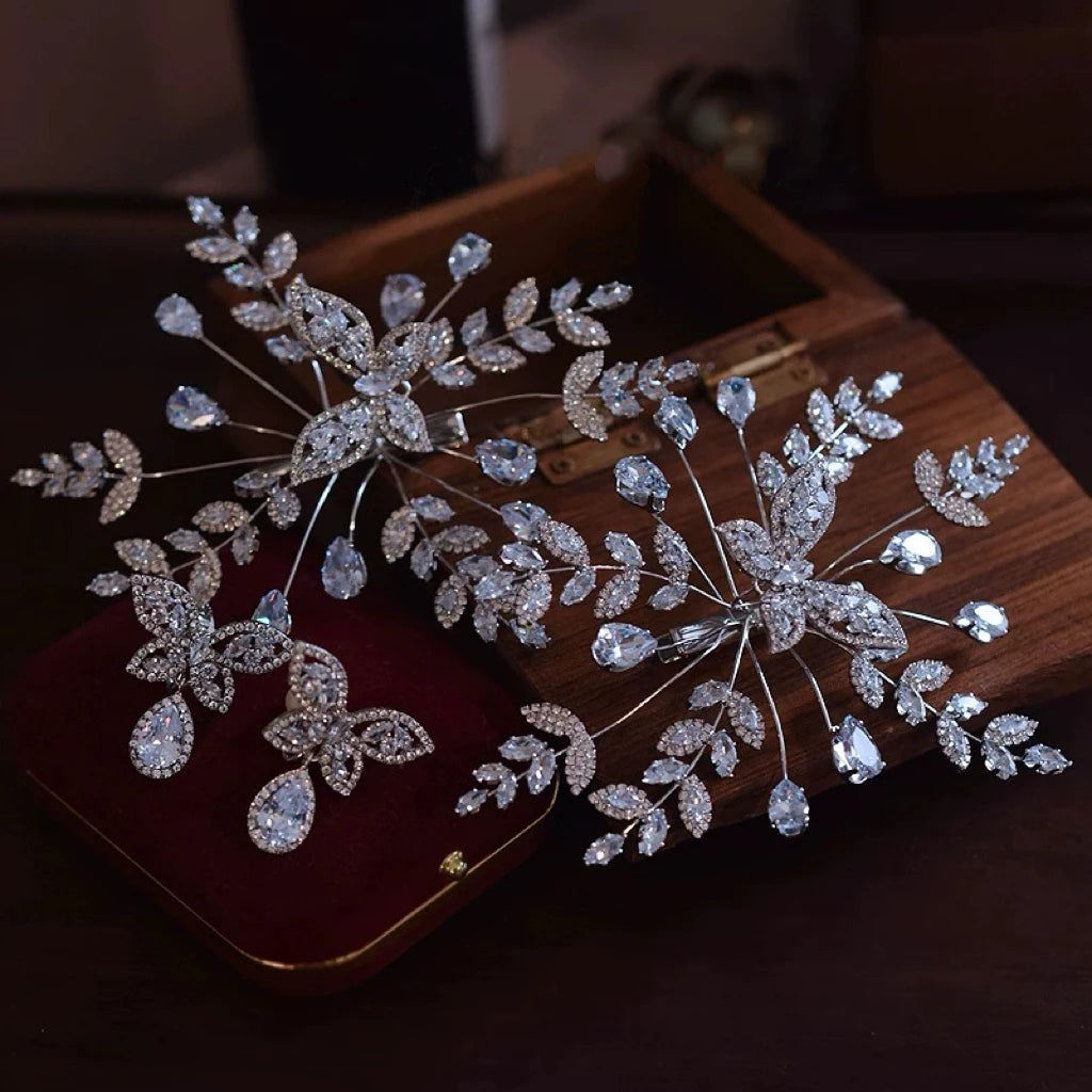Wedding Accessories Rhinestones Hair Combs Pins Flower Leaf Hairpins Brides Bridesmaids Silver Color Head Piece Bridal Jewelry