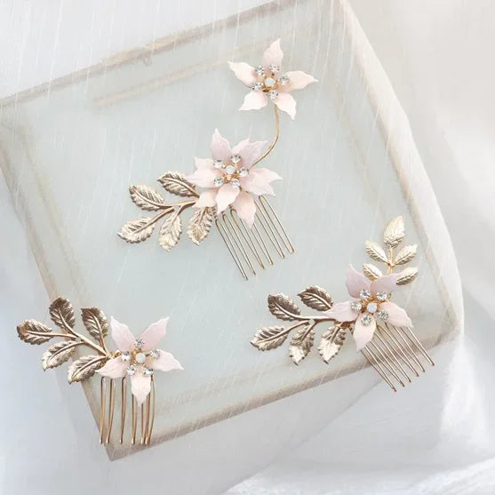 Wedding Accessories Gold Color Flower Hair Comb Pin Clip Crystal Hairpins For Brides Bridesmaids Leaf Head pieces Bridal Jewelry