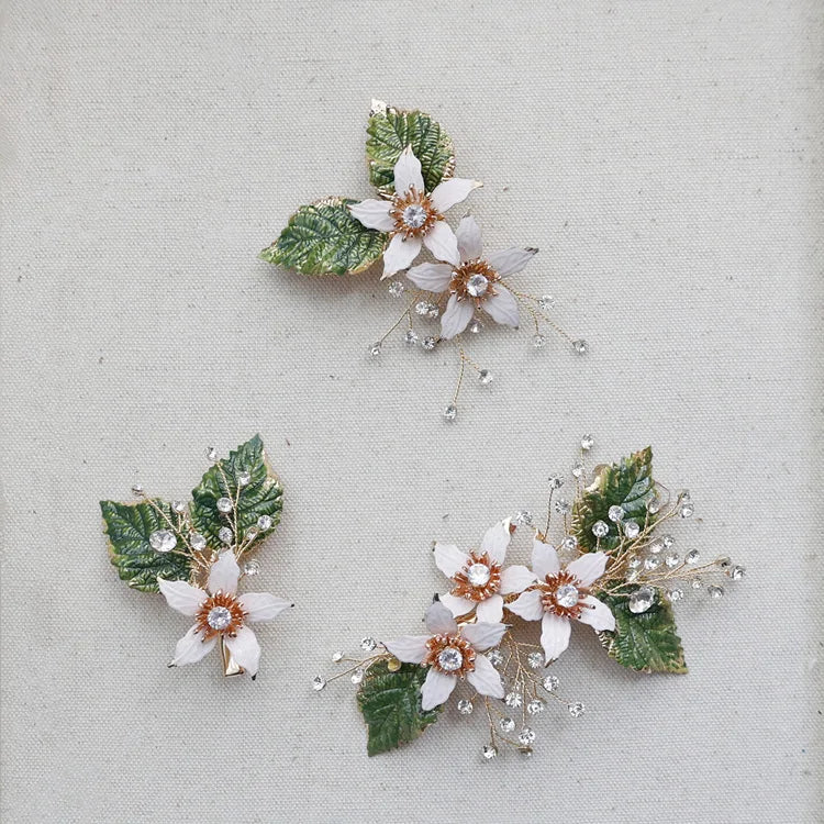 Wedding Accessories Flower Leaf Hair Pin Clip Gold Color Hairpin Bride Bridesmaids Rhinestones Crystal Head Piece Bridal Jewelry