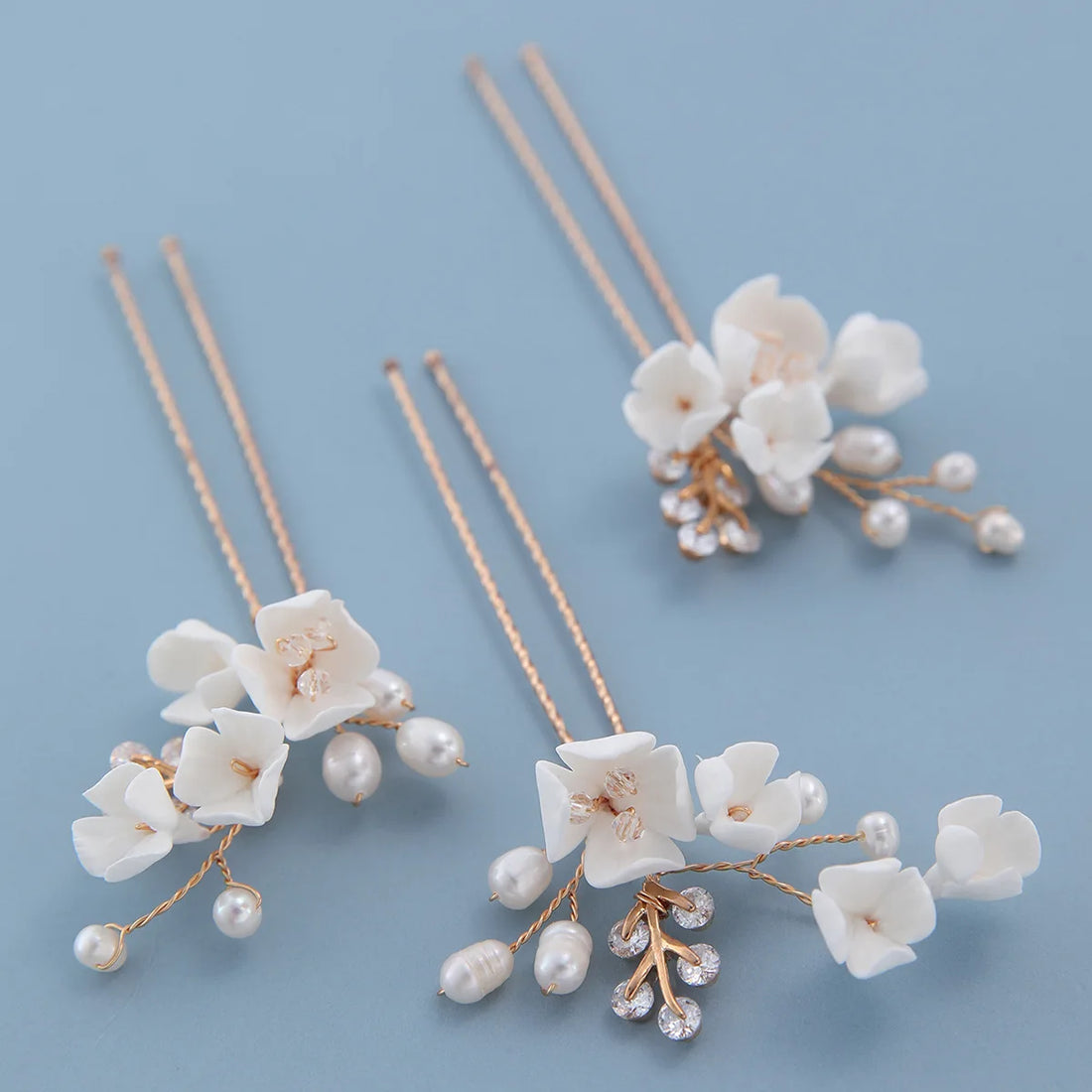 Porcelain Flower Hair Comb Clip Pin Pearl Hairpin For Brides Party Gift Floral Head Pieces Wedding Accessories Bridal Jewelry