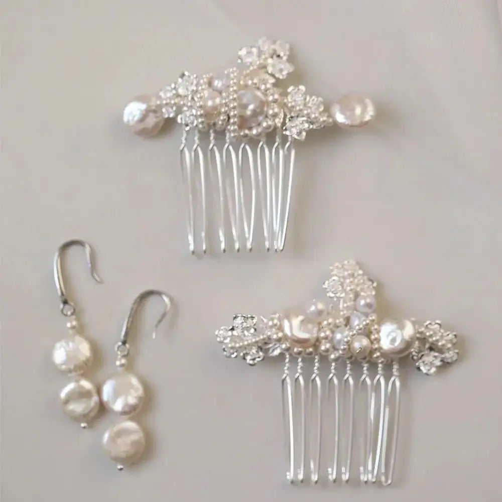 Pearls Hair Comb Pin Clip Silver Color Head Piece For Bride Bridesmaids Women Hairpin Earring Bridal Jewelry Wedding Accessories