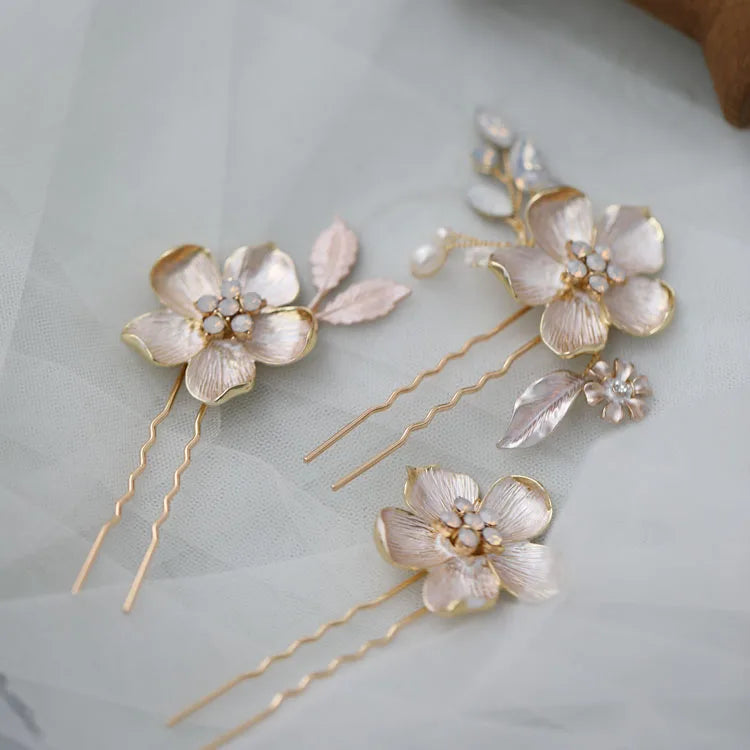 Vintage Gold Silver Color Hair Pin Clip Porcelain Flower Leaf Head Pieces For Brides Hairpins Wedding Accessories Bridal Jewelry