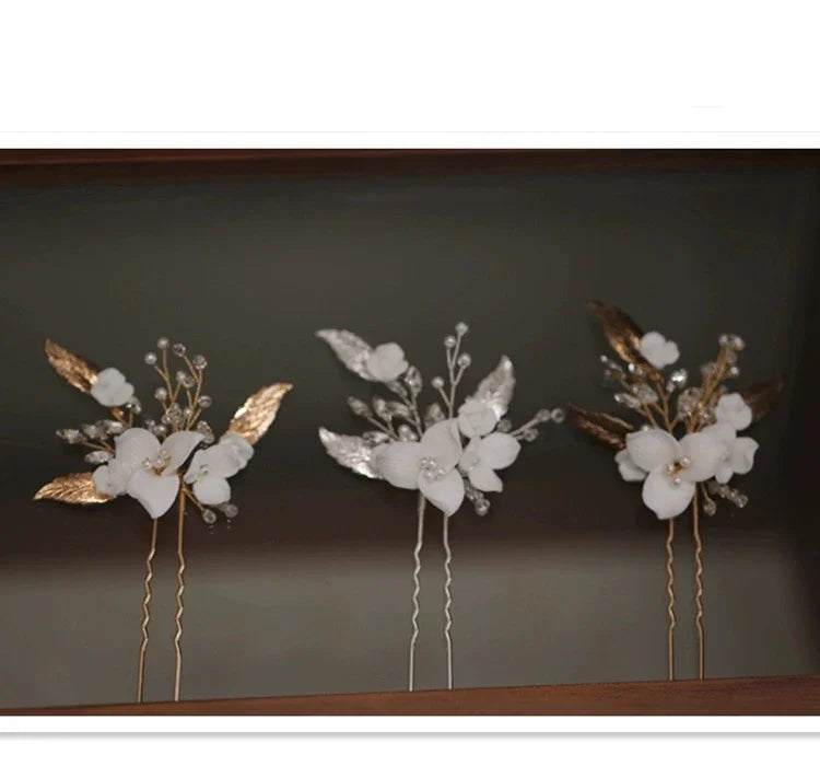 Wedding Accessories Porcelain Flower Hair Pin Clip Women Girl Hairpin For Brides Gold Silver Color Head Piece Bridal Jewelry