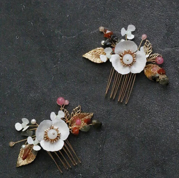 Porcelain Flower Hair Comb Pin Clip Gold Silver Color Head Piece Brides Bridesmaids Hairpin Wedding Accessories Bridal Jewelry