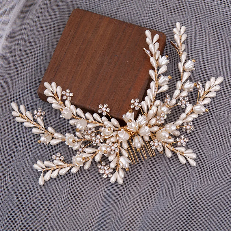 Wedding Accessories Porcelain Flower Hairpin Gold Color Head Piece Pearl Hair Combs Clip For Brides Birthday Gift Bridal Jewelry