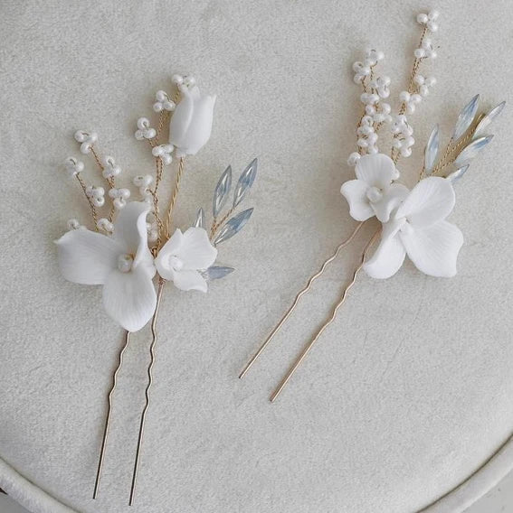 Bridal Jewelry Gold Silver Color Hairpin Porcelain Flower Hair Pin Clip Brides Women Head Piece Headdress Wedding Accessories