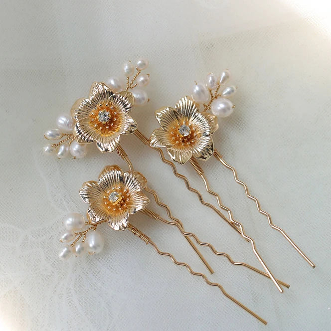 Wedding Accessories Flower Head Pieces Vintage Gold Silver Color Hair Pins Clips For Brides Bridesmaids Hairpins Bridal Jewelry
