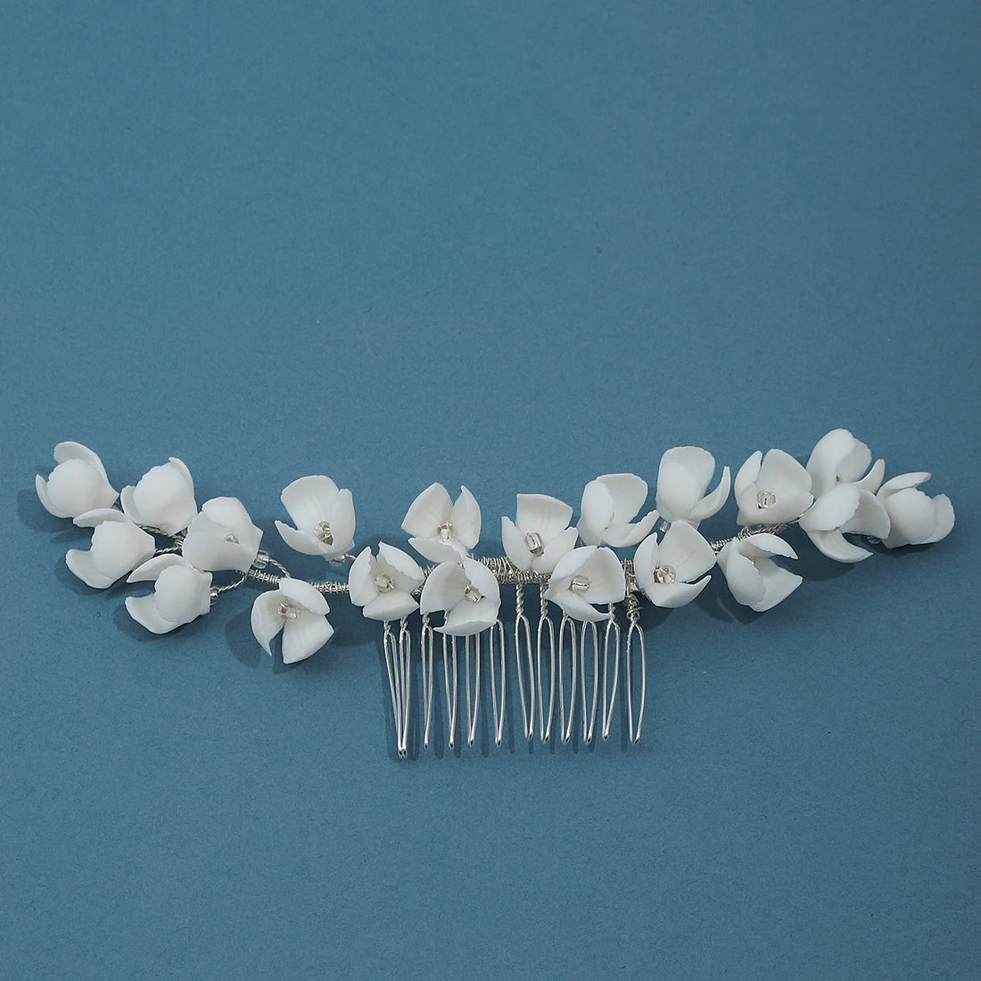 Wedding Accessories Silver Color Hair Comb Pin Porcelain Flower Head Piece For Brides Party Silver Color Hairpin Bridal Jewelry