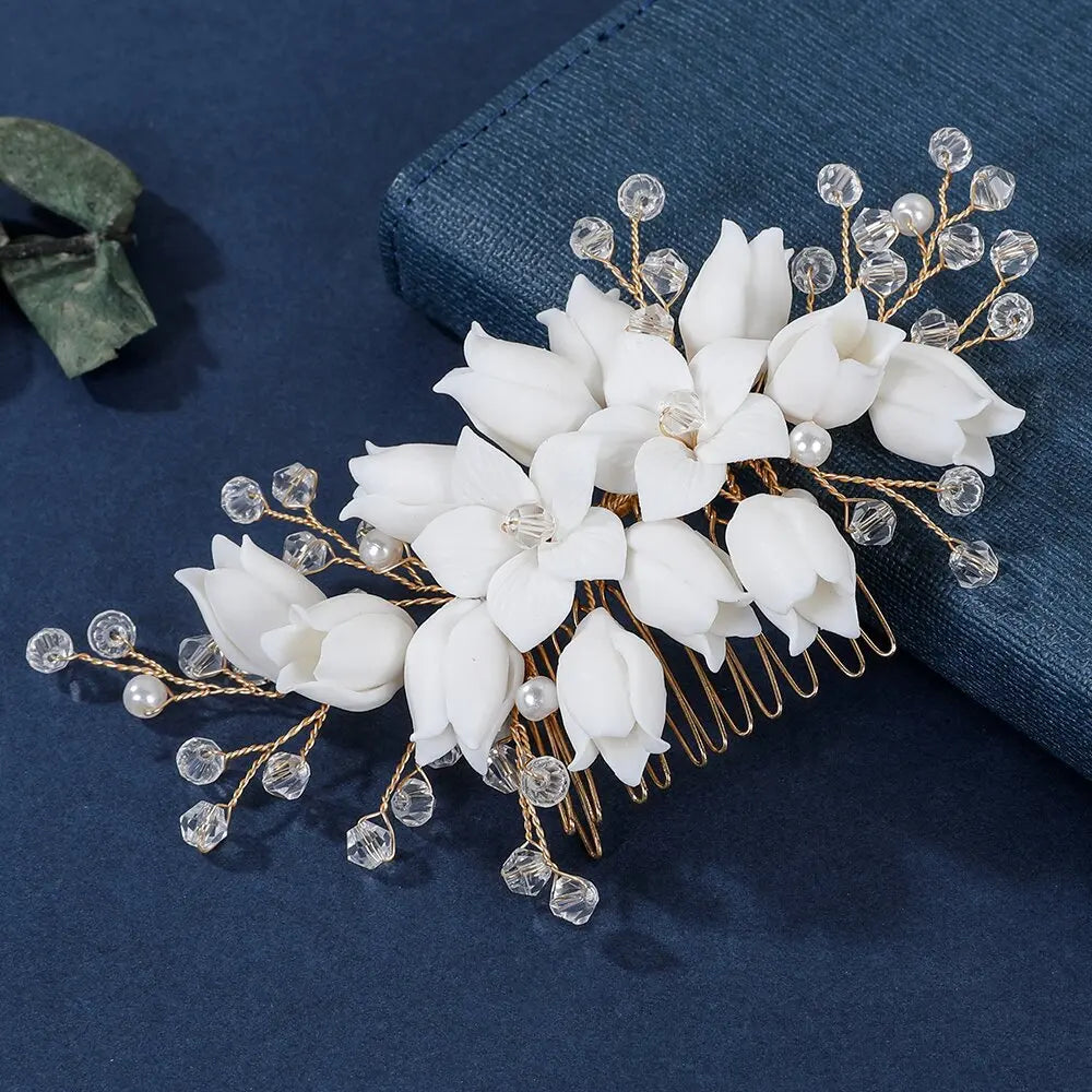 Wedding Accessories Porcelain Flower Head Pieces Vintage Hair Combs Clips Brides Bridesmaids Gold Color Hairpin Bridal Jewelry