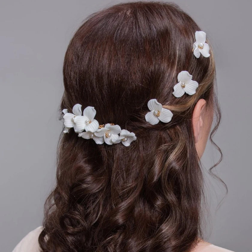 Gold Color Hair Clip Pins Porcelain Rose Flower Hairpins For Brides Bridesmaids Headpieces Bridal Jewelry Wedding Accessories