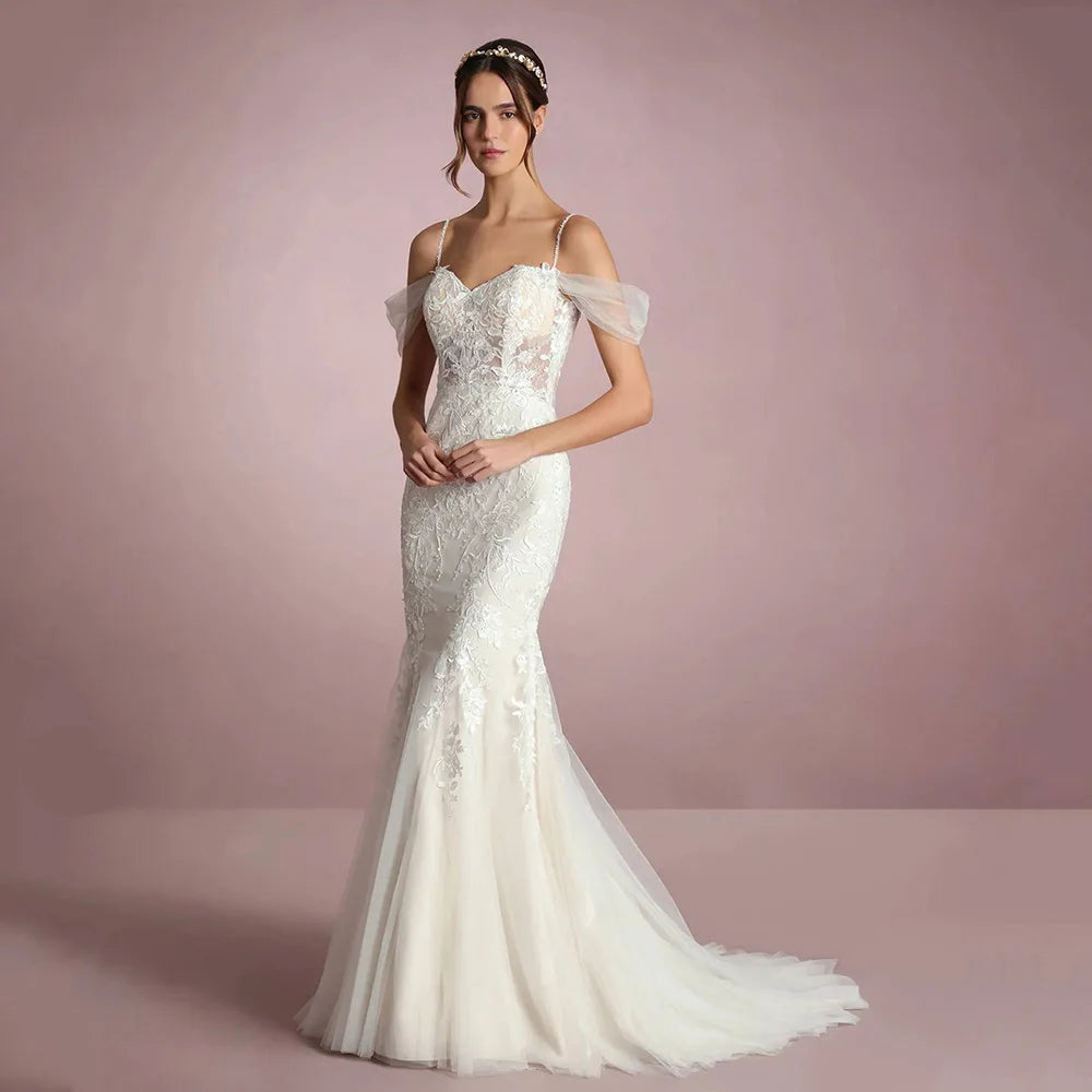 2025 Mermaid Luxury Lace Wedding Dresses Off Shoulder Brides Dresses Illusion Back Appliques Sexy Bridal Gown Customized
