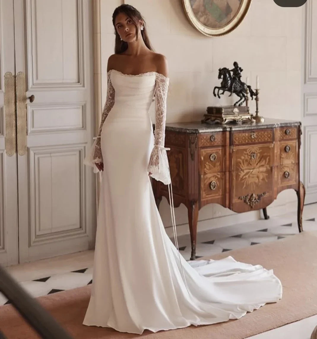 customized Mermaid Wedding Dress Sexy Lace Long Sleeve Robe Off The Shoulder Bridal Dresses Elegant Vestidos De Novia