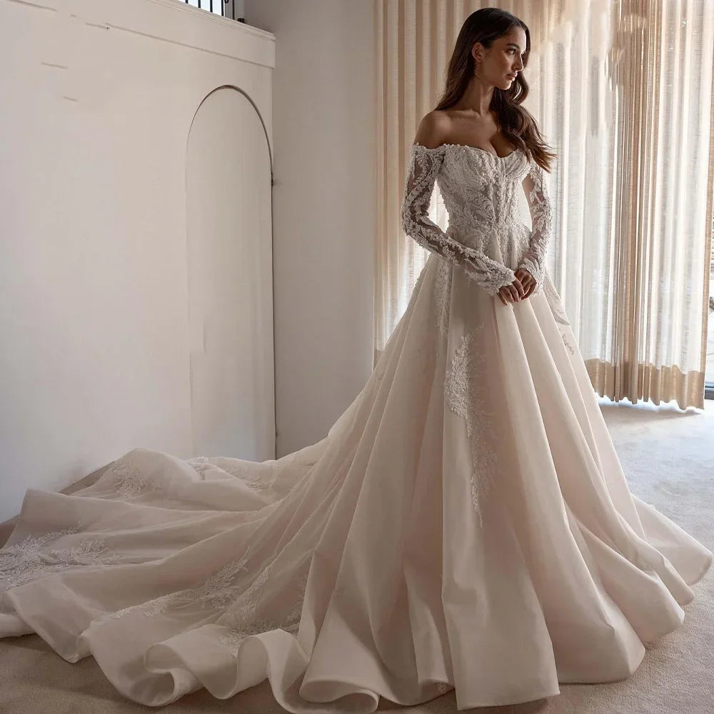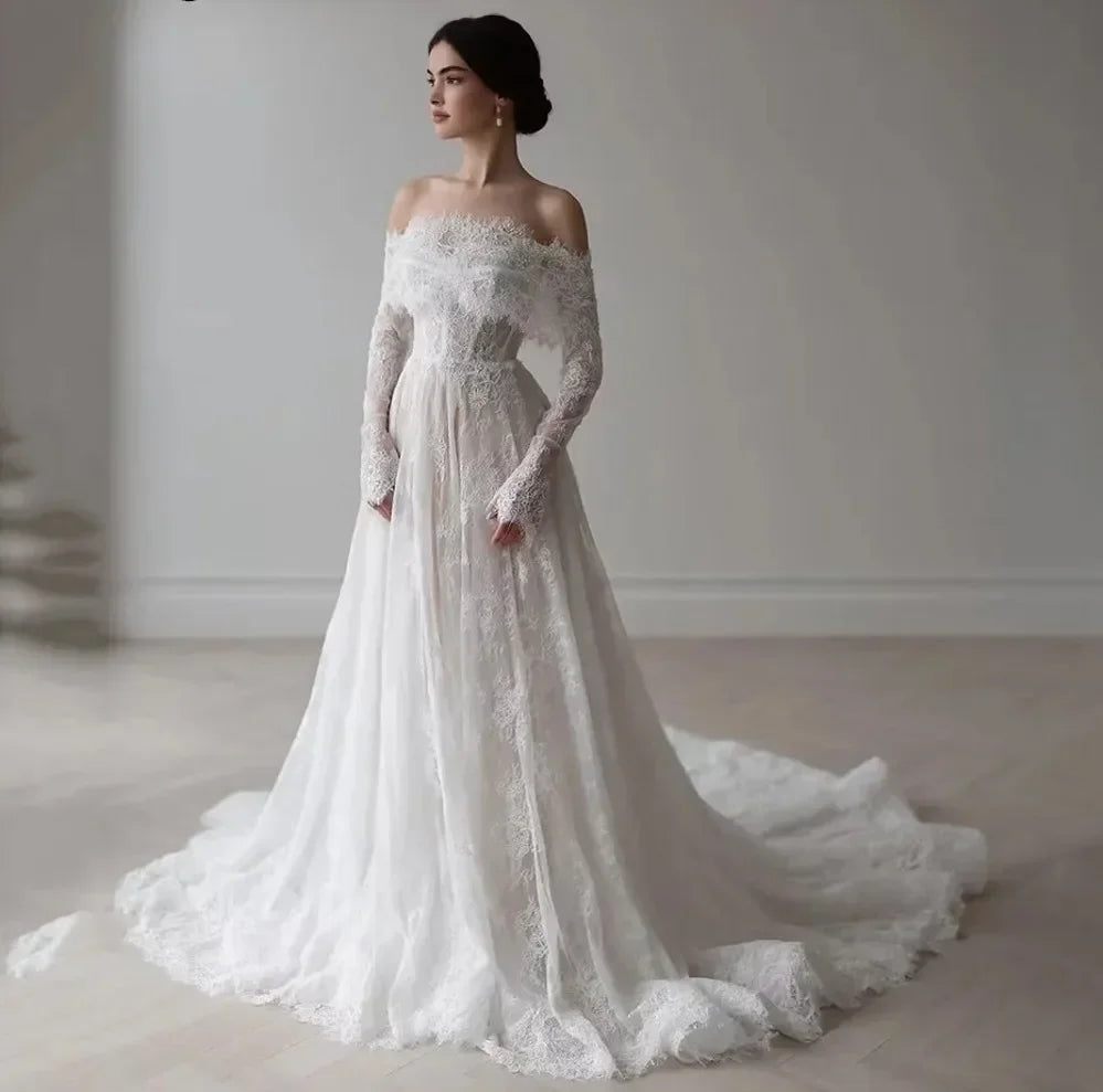 customized Lace Full Sleeves Wedding Dress Off The Shoulder A-line Bridal Gowns 2026 robe de mariage Vestidos De Novia