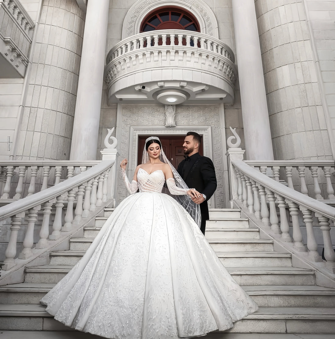 Customized Elegant V-Neck Wedding Dress Lace Sequin Beaded Princess Bridal Gown Princess Bride Marriage Women Clothing