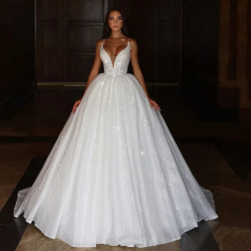 Customization Luxurious Spaghetti Strap Shiny Women's Wedding Dresses Appliques Bride Gowns A Line Princess Vestidos De Novia