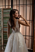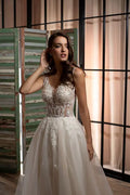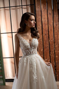 2025 Wedding Dresses Luxury Lace Applique Illusion V Neck A-Line Brides Gown Tulle Backless Princess Bridal Dresses Customized