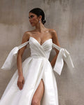 2025 Wedding Dresses Women Sweetheart Bow Pleated High Slit Button Bridal Gown Elegant Satin Wedding Party Dress Customized