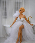 2025 White Beach Bridal Maxi Robe Customize Women Strapless Tulle Gowns Boudoir Bathrobe Wedding Dress