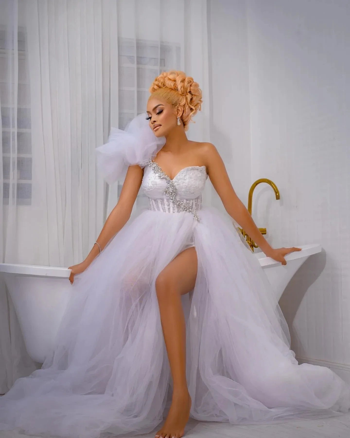 Every gown undergoes a meticulous creation process. Due to variations in lighting, display settings, and photography conditions, slight color differences may occur between product images and the actual dress. For the most accurate color reference, we recommend viewing on Apple devices.