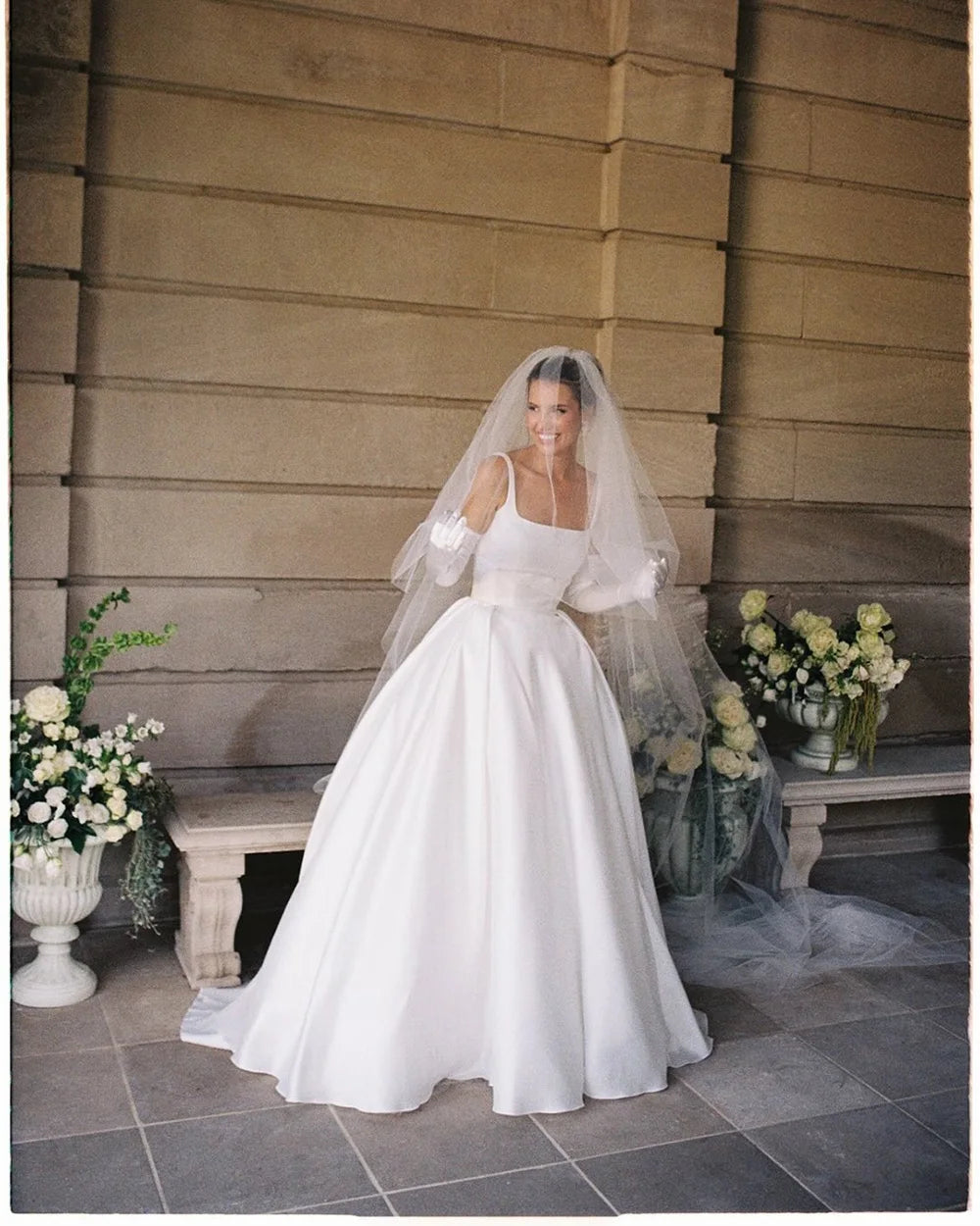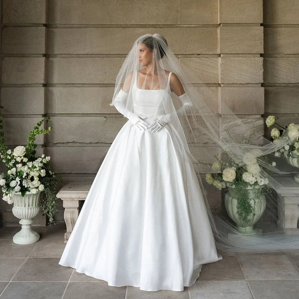 A Line Wedding Dresses Women's Square Neck Bridal Gowns Formal Bride Dress Sleeveless Satin Wedding Party Dress Customized