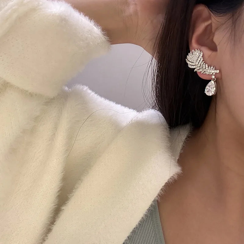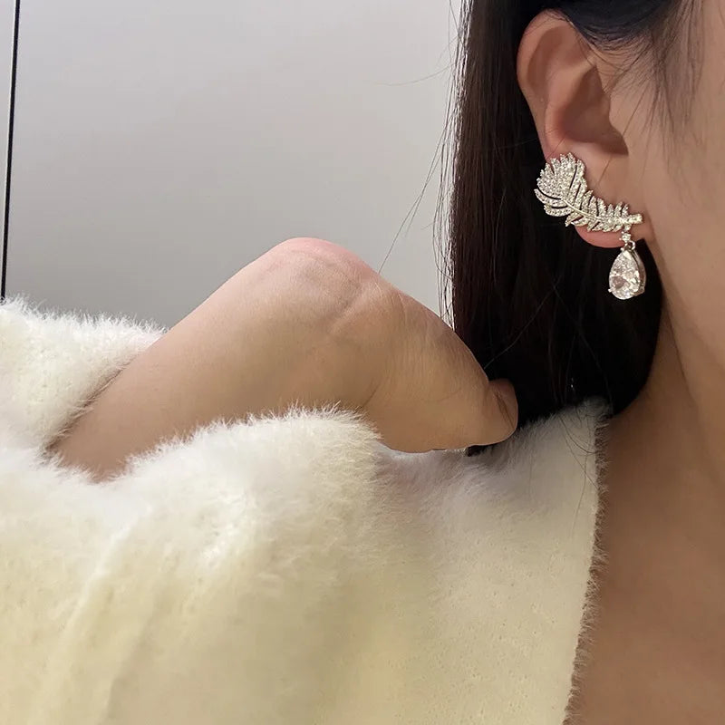 AAA Zircon Bridal Earrings Feather Cubic Zirconia Wedding Earring For Bride Bridesmaids Accessories Women Birthday Gifts Jewelry