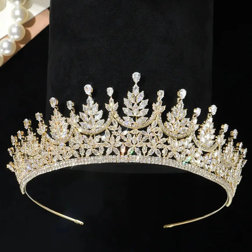 AAA Zircon Tiaras and Crowns CZ Zirconia Diadem Bride Princess Queen Gold Color Headband Wedding Accessories Bridal Hair Jewelry