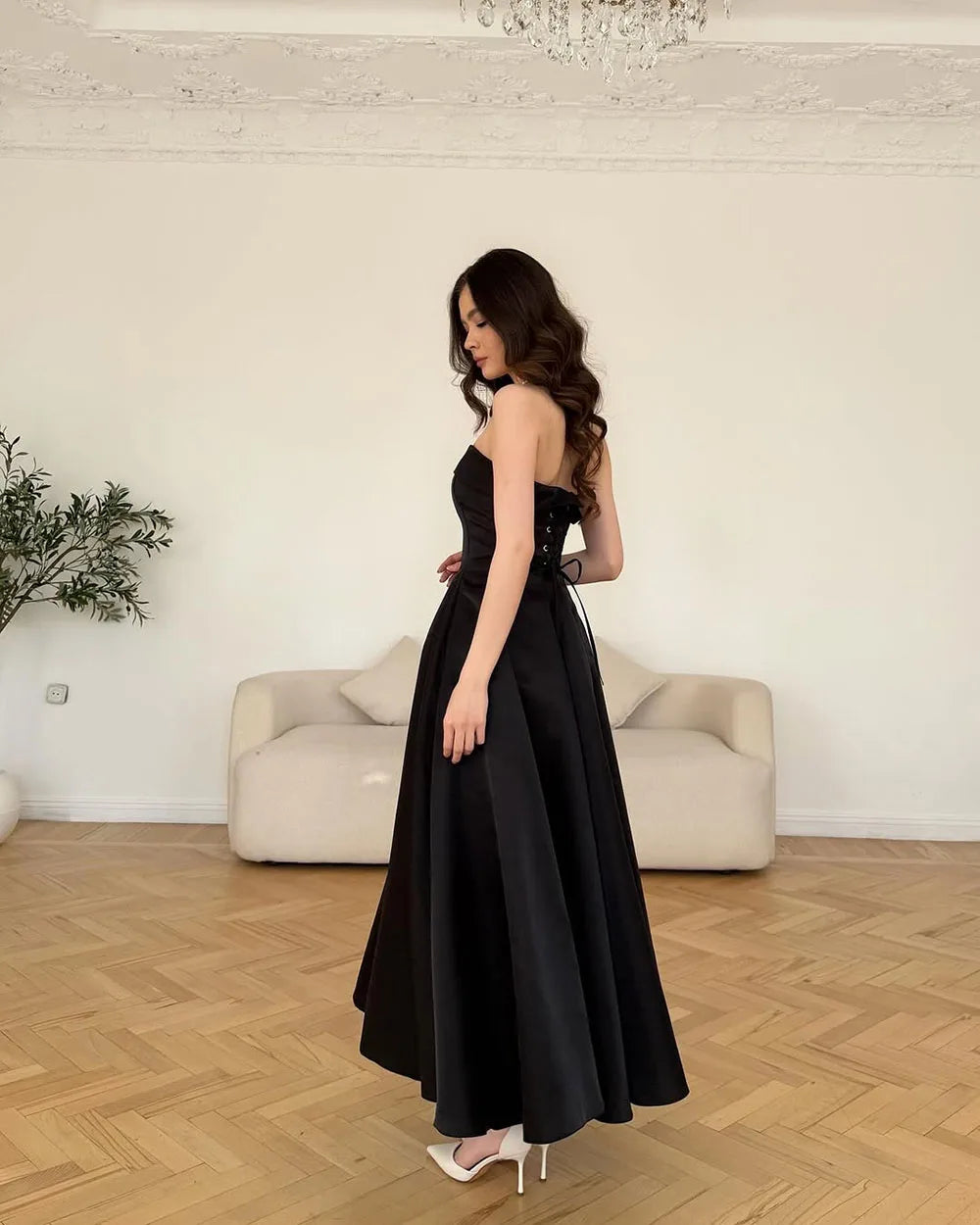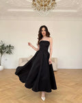 Black Simple Strapless Satin Evening Dress Corset Back Graduation A Line Wedidng Party Guest Gown Birthday Prom Dress Customized
