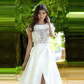 Regardless of the color you select for your dress, the white, black, or ivory lace accents will remain consistent. This applies to designs where the bodice and skirt are in different colors, maintaining a harmonious and sophisticated aesthetic.