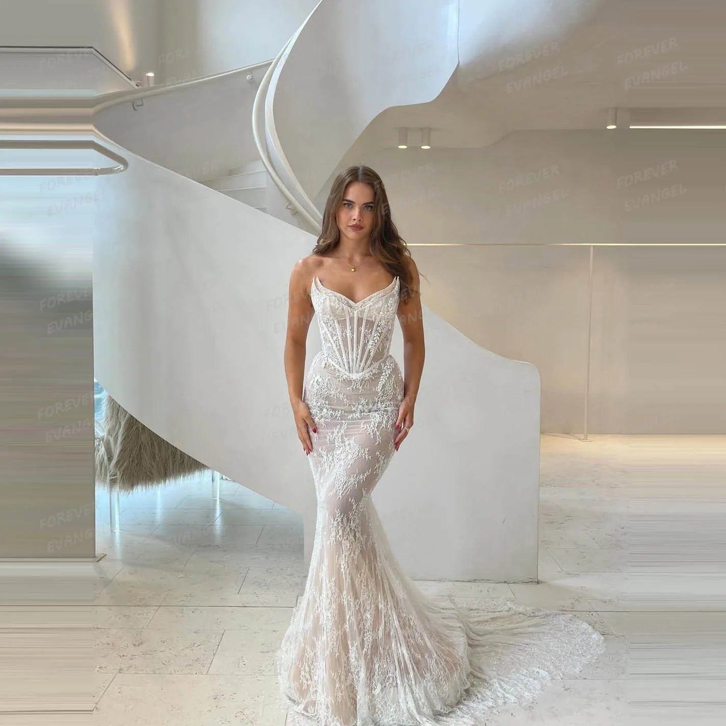Boho Mermaid Wedding Dresses Woman Bride Gowns Sexy Sweep Train Lace Appliques Sweetheart Tulle Customized Vestidos De Novia