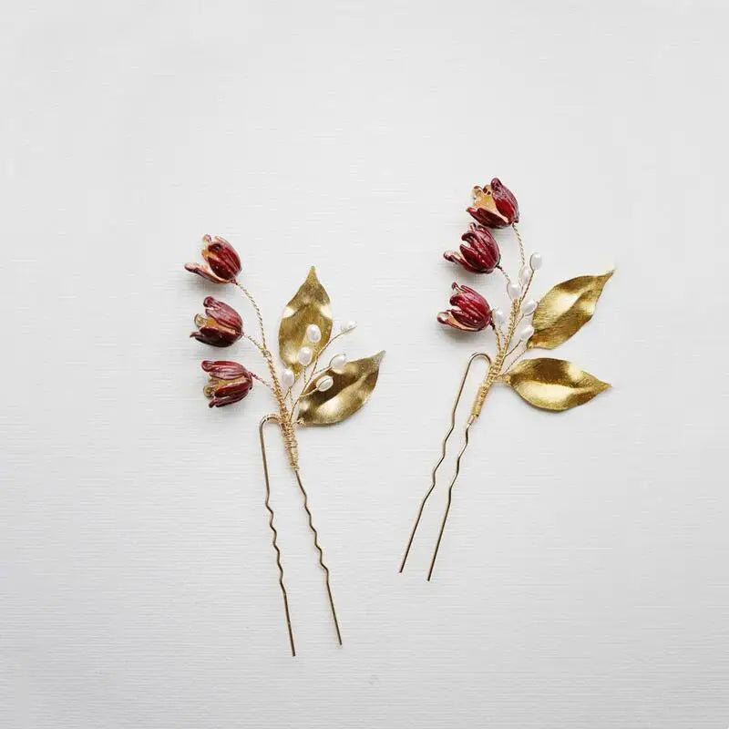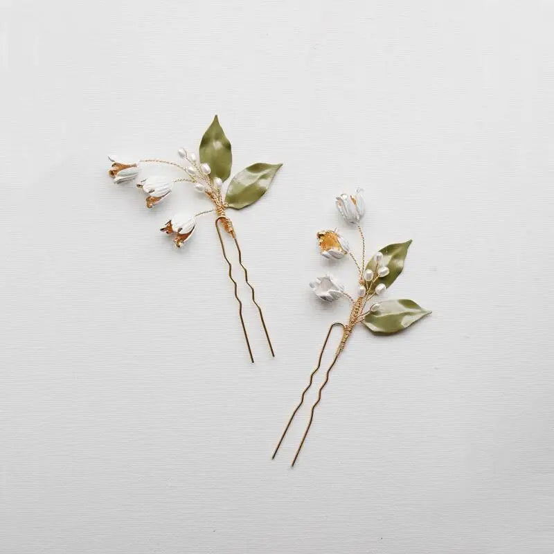 Bridal Accessories Flower Leaf Hair Pin Clip Pearl Gold Color Hairpin For Bride Bridesmaids Headpiece Headdress Wedding Jewelry