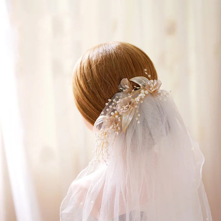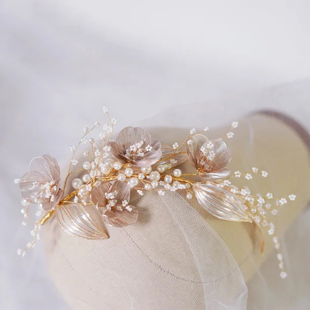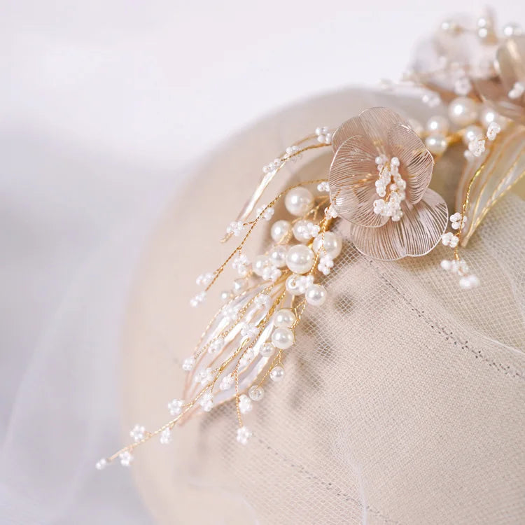 Bridal Hair Accessories Gold Color Headband Headpiece Pearl Hairband For Women Bride Flower Leaf Headdress Crown Wedding Jewelry