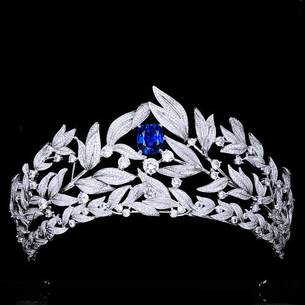 Bridal Hair Jewelry Blue Zircon Tiaras and Crowns Cubic Zirconia Headband Women Bride Princess Queen Diadem Wedding Accessories