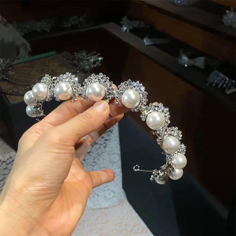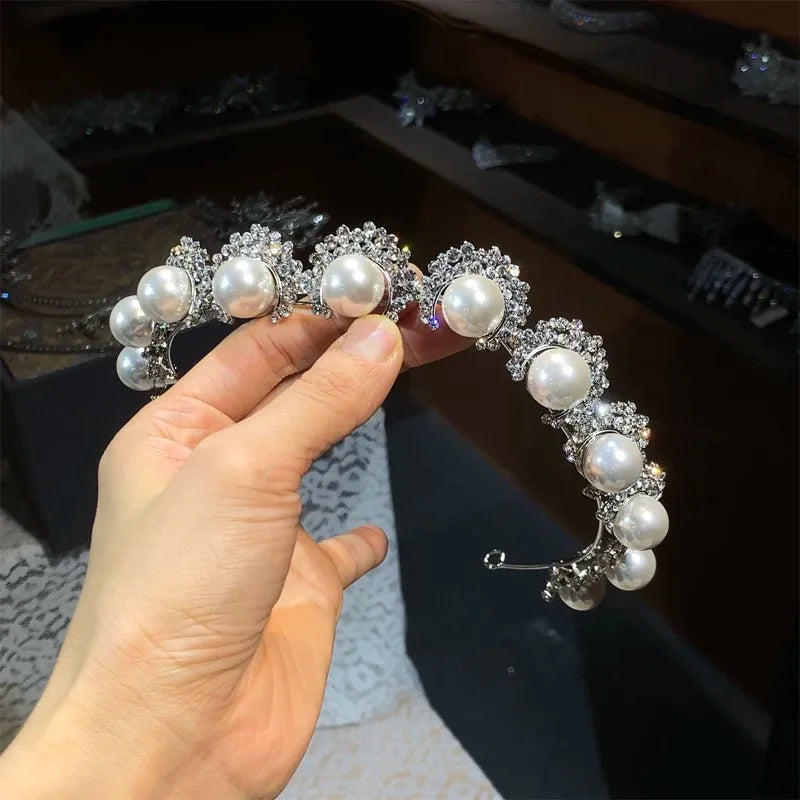 Bridal Hair Jewelry Crystal Pearl Tiaras and Crowns Rhinestones Diadem For Bride Princess Queen Headband Wedding Accessories