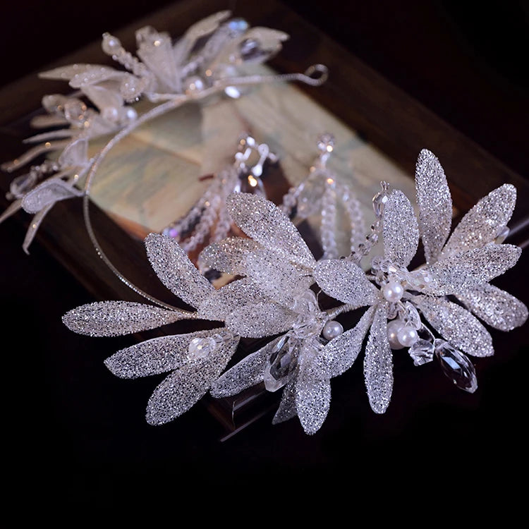Bridal Hair Jewelry Flower Headband Hairband Silver Color Headpiece Crown For Bride Women Headdress Headwear Wedding Accessories
