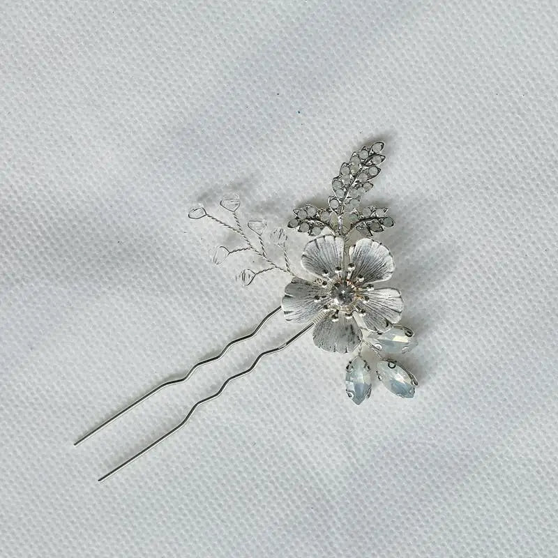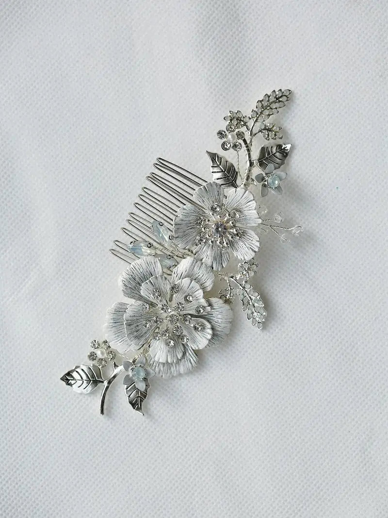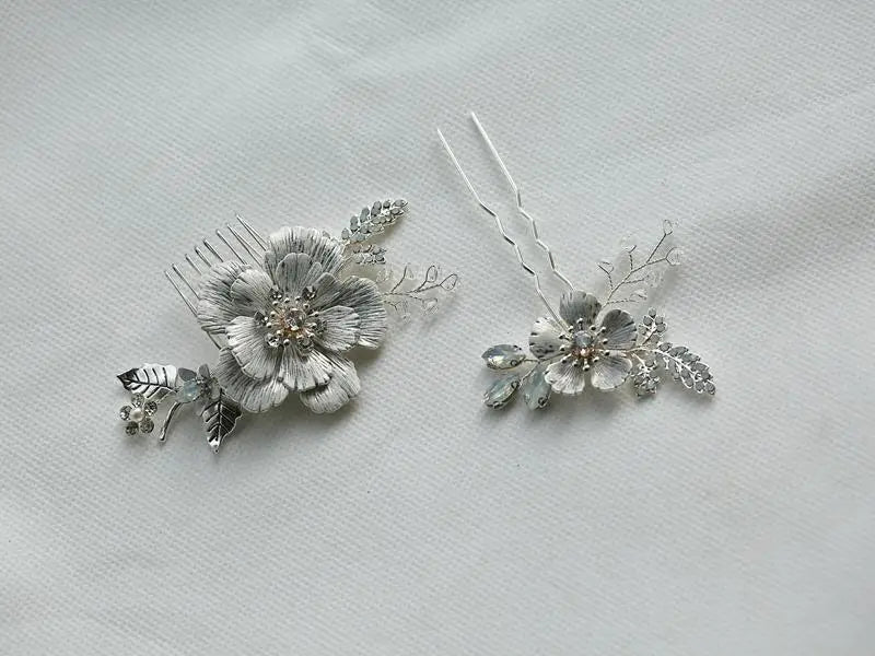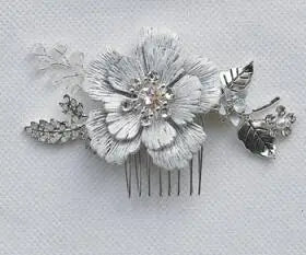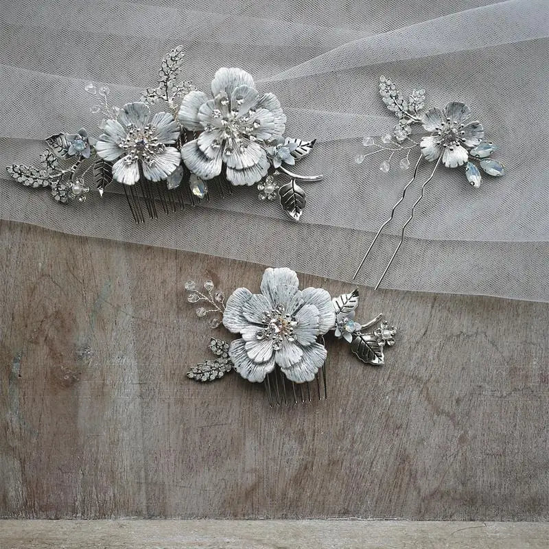 Bridal Hair Jewelry Flower Leaf Hair Combs Silver Color Head Pieces Rhinestones Hairpins For Women Brides Wedding Accessories