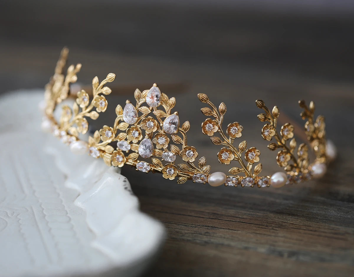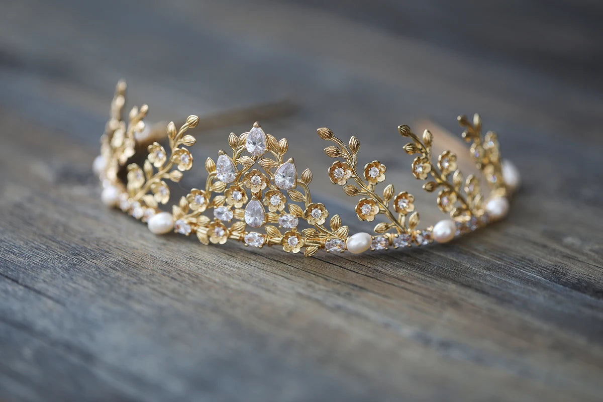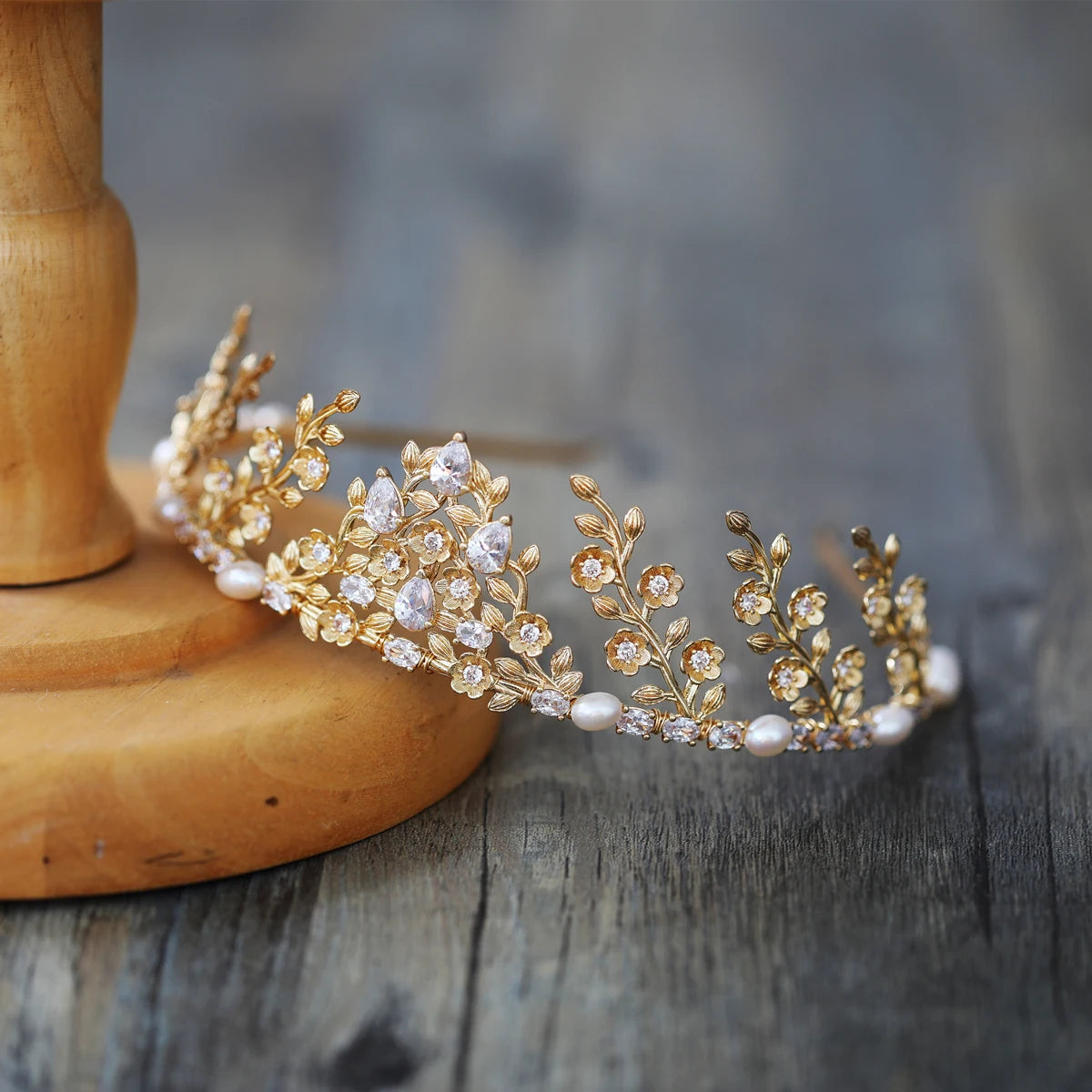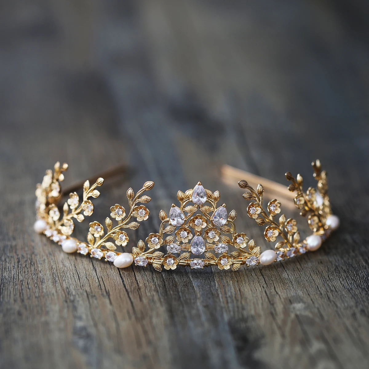 Bridal Hair Jewelry Vintage Tiara Crown Zircon Pearl Headband Headpiece For Brides Princess Queen Hairband Wedding Accessories