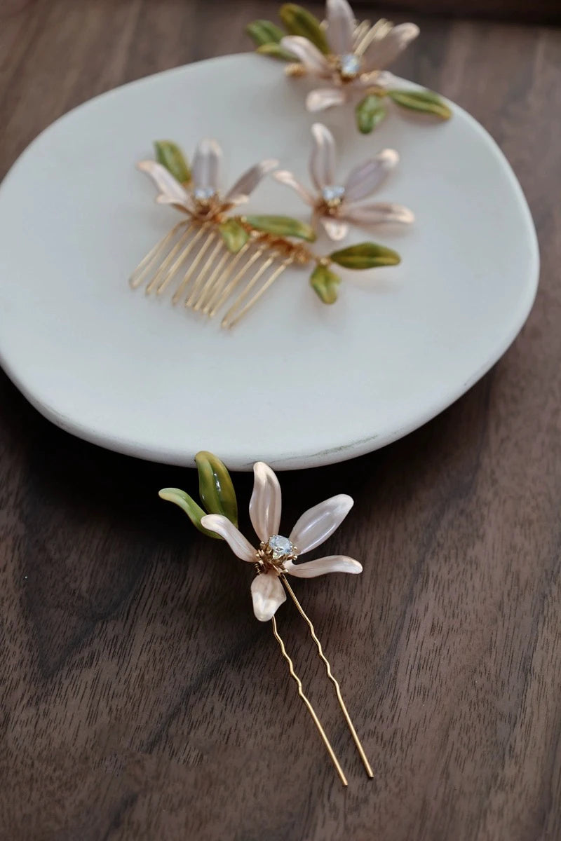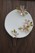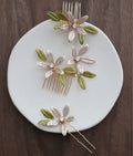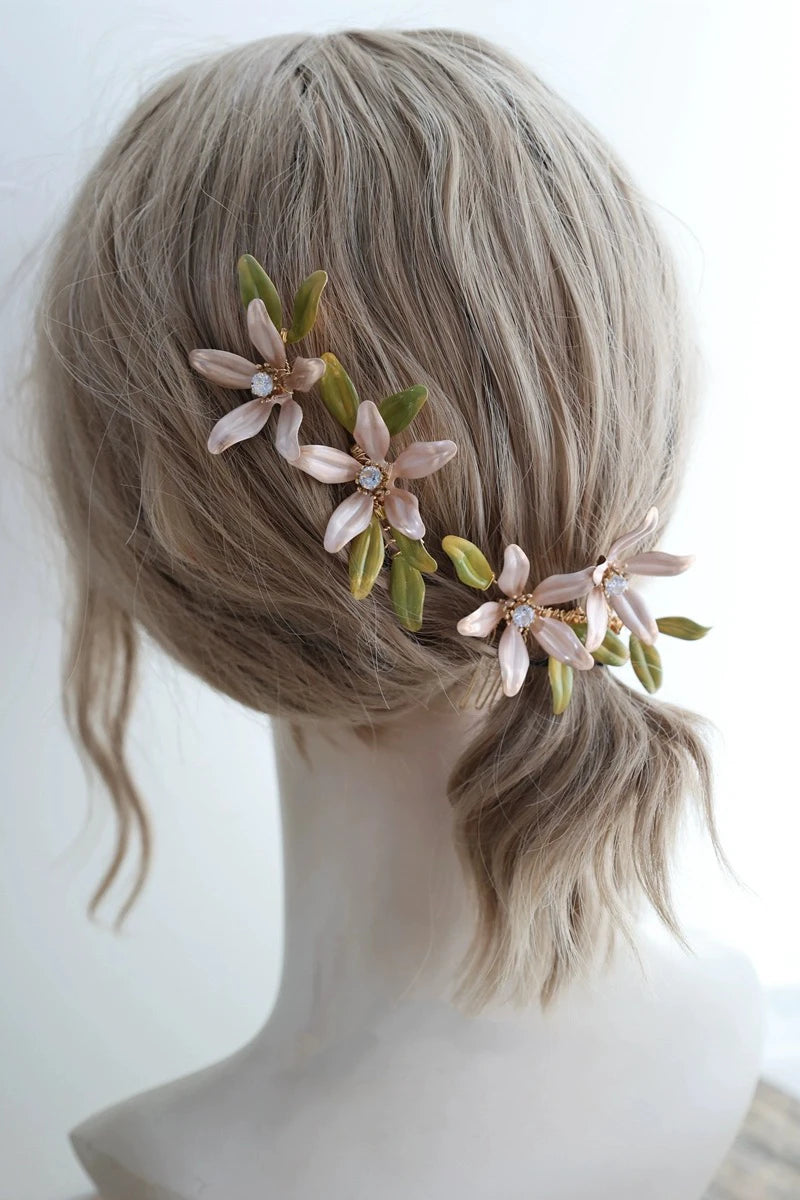 Bridal Jewelry Flower Hair Comb Pin Clip Gold Color Hairpin For Brides Leaf Crystal Rhinestones Head Pieces Wedding Accessories