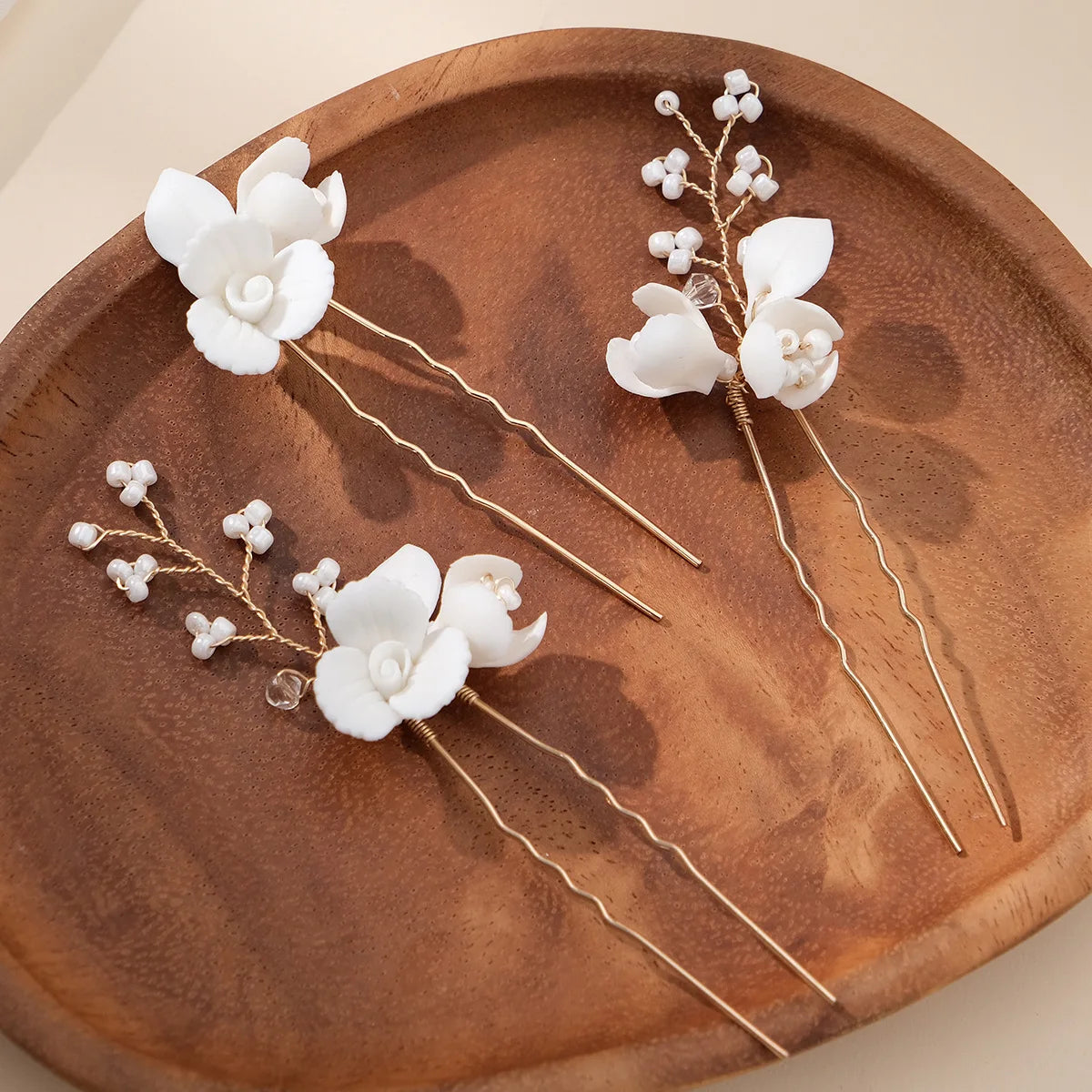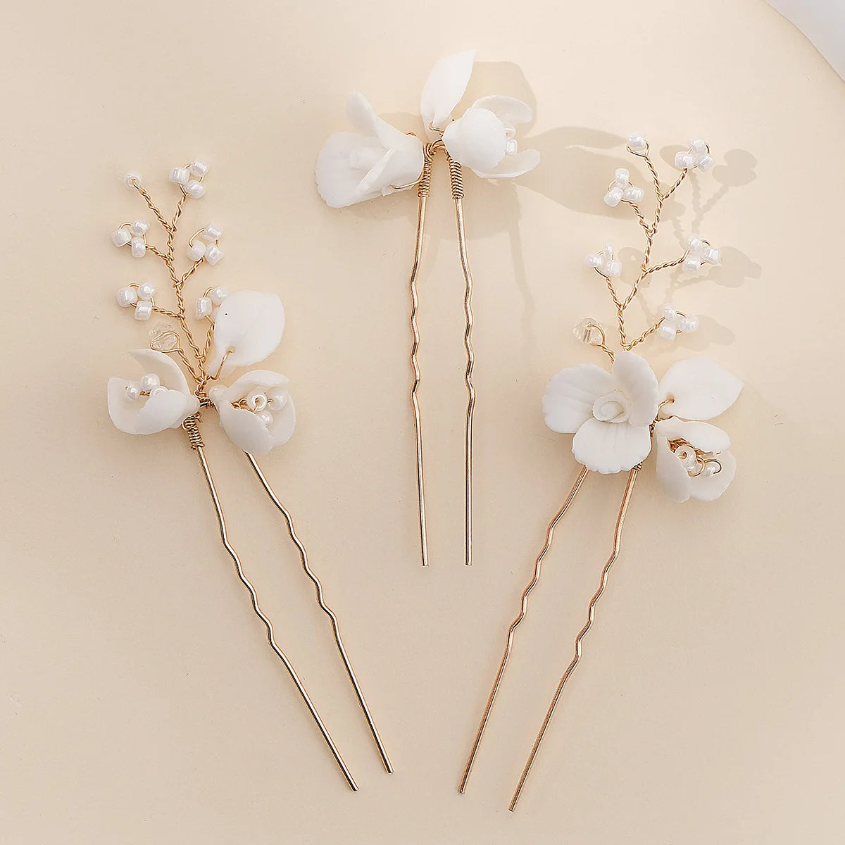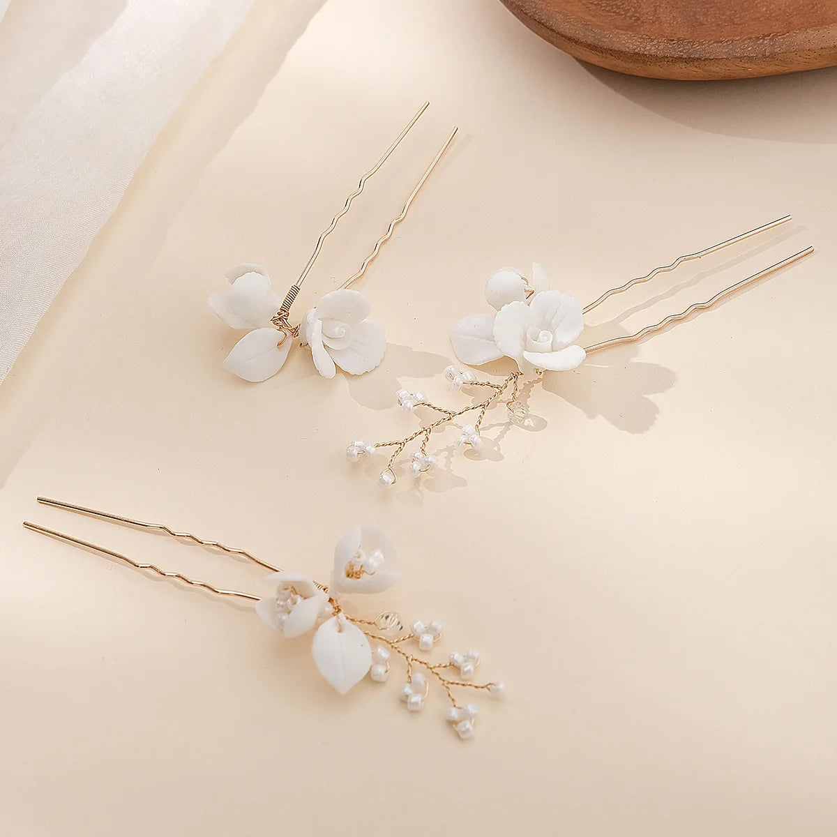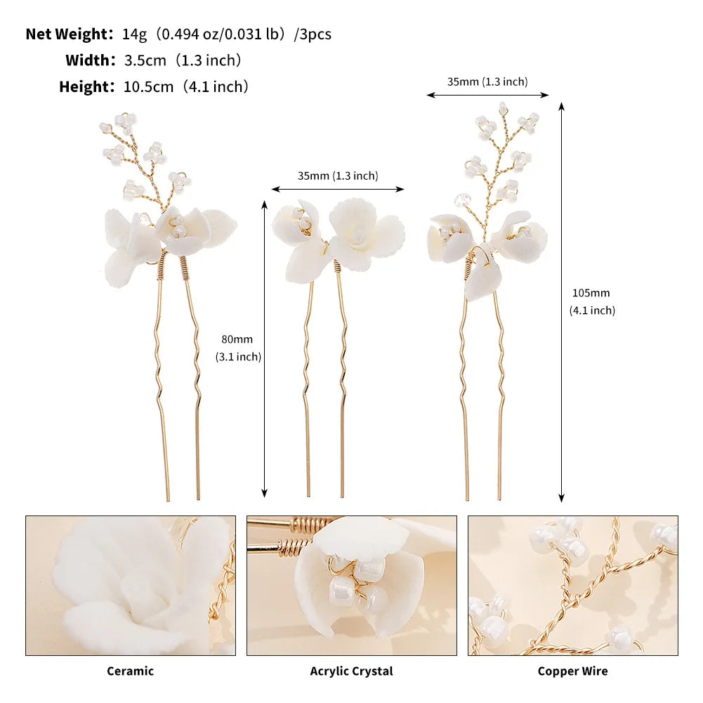Bridal Jewelry Gold Color Hair Pin Clip Porcelain Flower Hairpin For Bride Bridesmaids Women Gift Head Piece Wedding Accessories